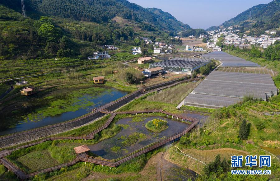 四川省珙县巡场镇三合村曾经是一个矿山废弃地,周边环境不佳,土地复垦利用受到影响。近年来,三合村启动矿山废弃地生态修复,整合利用人才、土地、资金、市场等要素资源,融合发展第一、三产业,引进农业科技企业,建成现代农业产业示范园区1000亩,成功打造可以养种循环利用的“三合·万物生微田园”,积极探索资源枯竭区生态修复和产业融合发展新路径。新华社记者江宏景摄