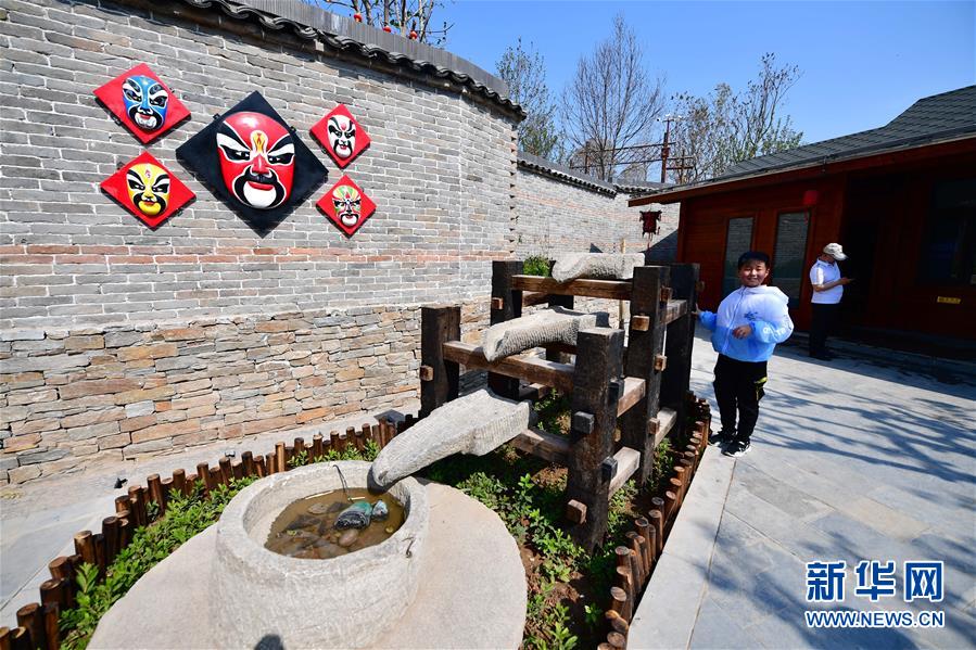 5月1日,游客在河南省鹤壁市淇滨区钜桥镇岗坡村的水系旁游玩。 新华社记者冯大鹏摄