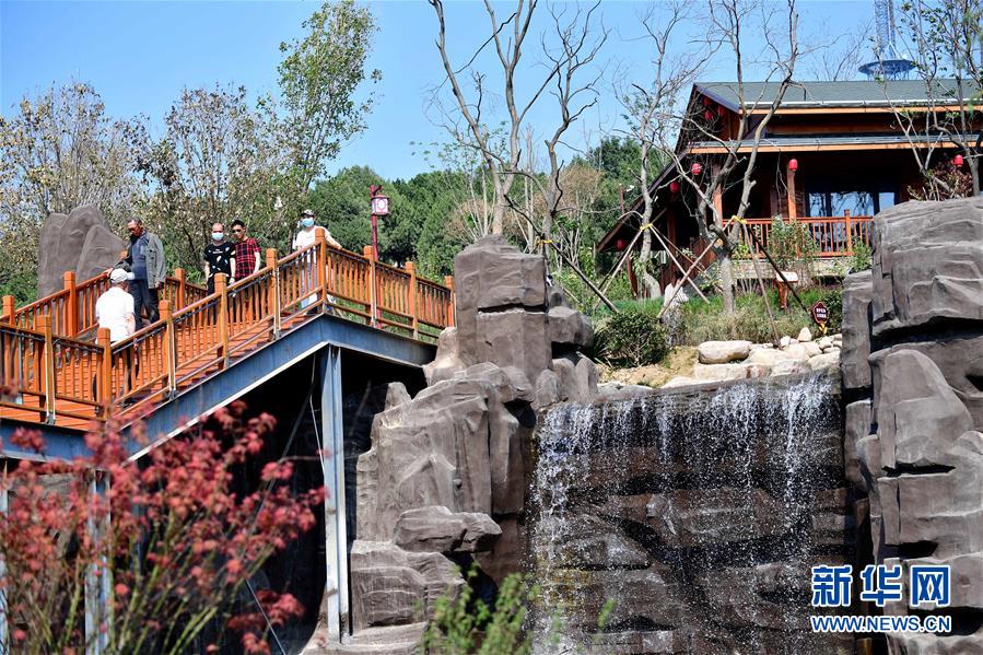 5月1日,游客在河南省鹤壁市淇滨区钜桥镇岗坡村渝派火锅乐园里游玩。 新华社记者冯大鹏摄