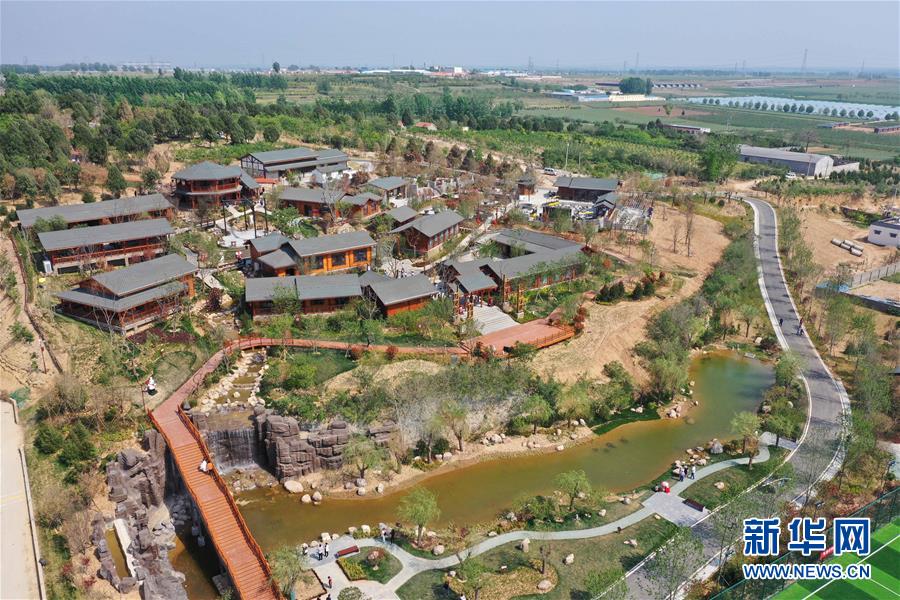 5月1日,游客在河南省鹤壁市淇滨区钜桥镇岗坡村栈桥上游玩(无人机照片)。河南省鹤壁市淇滨区钜桥镇岗坡村是一座有着千年历史的古村落。近年来,淇滨区深入践行乡村振兴战略,打造以岗坡村为中心的龙岗乡村振兴示范带,采取“村集体土地入股、资金入股、年底分红”的运作模式,实现了“资源变资产、资金变股金、村民变股民”的“三变”。农户通过到龙岗乡村振兴示范园打工等方式,实现就近就业,每人每月至少有2500元至3000元的保底工资。 新华社记者冯大鹏摄