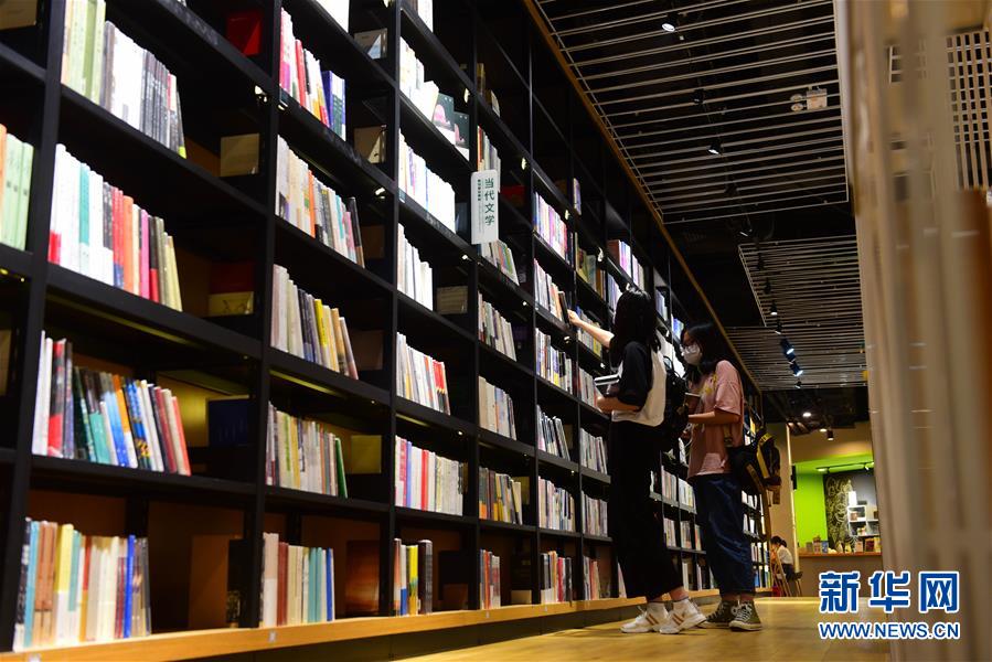 5月2日,读者在江苏无锡一家书店挑选图书。“五一”假日期间,人们以多种方式放松心情、享受假日。新华社发(还月亮摄)