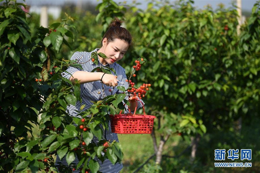 近日,安徽省肥西县丰乐镇凤岭苗木种植扶贫产业园里10多亩樱桃进入采摘期,农民忙着采摘樱桃,供应市场。近年来,丰乐镇大力推动农旅结合,发展以猕猴桃、樱桃种植为特色的生态休闲农业,助力脱贫攻坚。