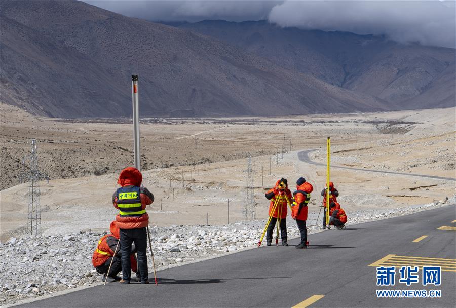 国测一大队队员在西藏定日县曲当乡境内进行水准测量(4月18日摄)。水准测量是一种利用提供水平视线的仪器(如水准仪、水准标尺),测定地面不同点之间的高差,并以此推算高度的一种方法,是经典大地测量的重要技术之一。在目前正在进行的2020珠峰高程测量中,部分国测一大队队员承担了水准测量的任务。新华社记者孙非摄