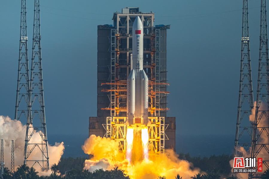 2020年5月5日18时00分,为我国载人空间站工程研制的长征五号B运载火箭,搭载新一代载人飞船试验船和柔性充气式货物返回舱试验舱,在海南文昌航天发射场点火升空,首飞任务取得圆满成功。