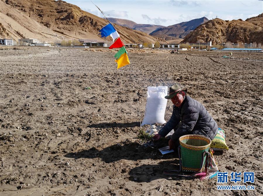 5月4日,西藏扎西宗乡的格桑老人在春耕仪式上。新华社记者普布扎西摄