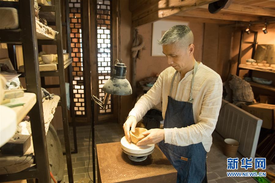 5月8日,项宏金在龙泉青瓷装饰纹样研究所捏制器皿。1965年出生的项宏金,被浙江龙泉年轻一代瓷人称为“项哥”,他从20世纪90年代开始收集龙泉青瓷标本,研究青瓷纹样。2014年出版著作《龙泉青瓷装饰纹样》,次年开设龙泉青瓷装饰纹样研究所,将自己收藏的千余件标本跟瓷器爱好者、创作者免费分享。新华社记者翁忻旸摄