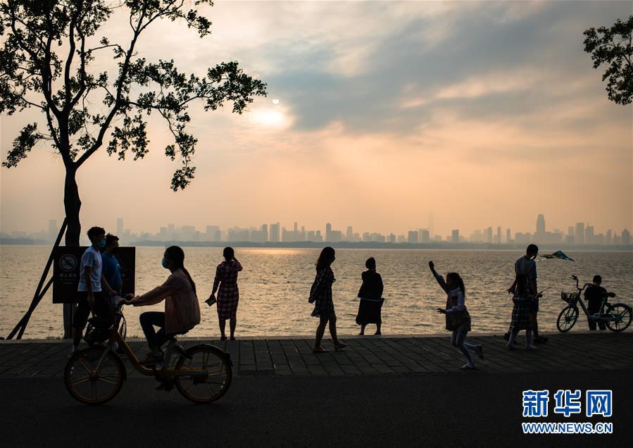 人们在武汉东湖绿道游玩(5月5日摄)。 新华社记者 肖艺九 摄