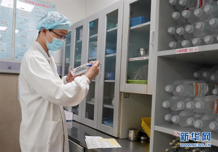 5月10日,在上海市普陀区中心医院急诊室,护士蔡杰君在准备药品。他曾在浦东国际机场“外防输入”抗疫一线坚守30天。新华社记者刘颖摄