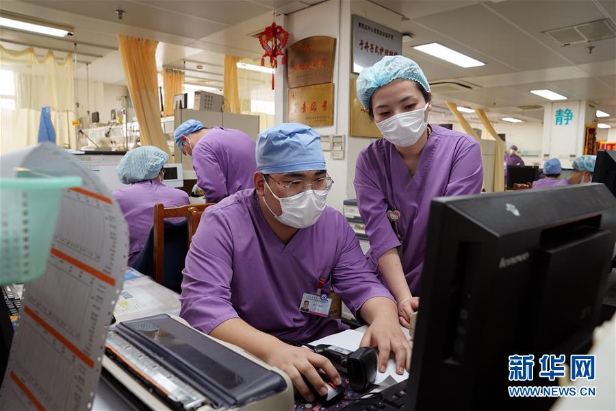 5月10日,在上海市普陀区中心医院急诊重症监护室,护士们在工作。新华社记者刘颖摄