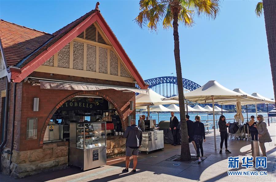 5月10日,在澳大利亚悉尼环形码头,市民在一间咖啡屋前等候。