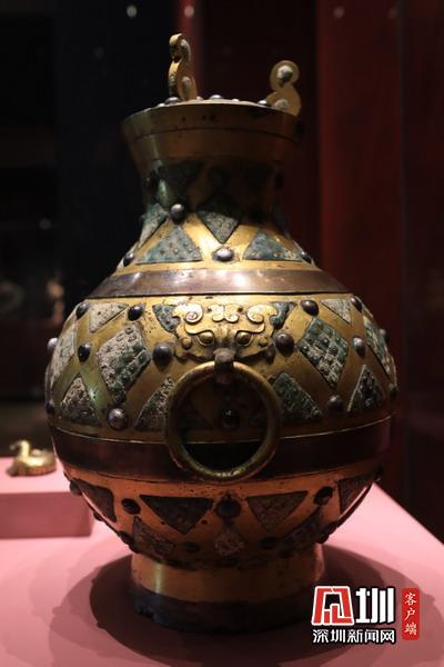 2020年5月10日报道,近十年来最大规模三国文物展“三国志——文化主题特展”,正在中华世纪坛展出。图为满城汉墓出土,鎏金银乳钉纹铜壶。