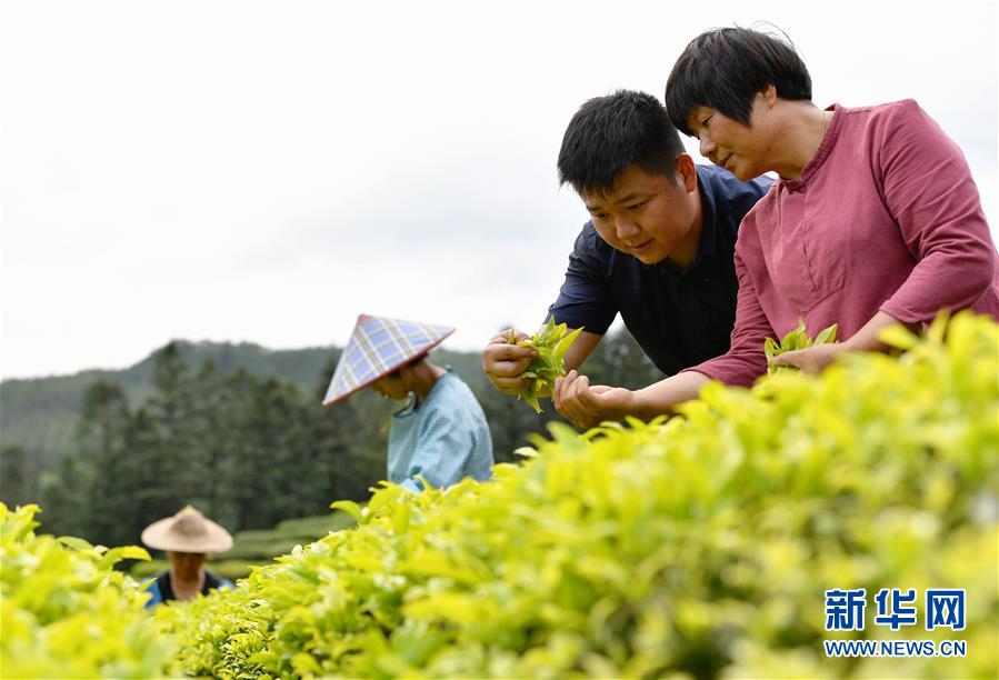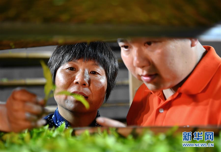 游玉琼跟方舟一起对武夷岩茶中的白鸡冠品种按白茶做法进行创新研发(5月10日摄)。新华社记者魏培全摄