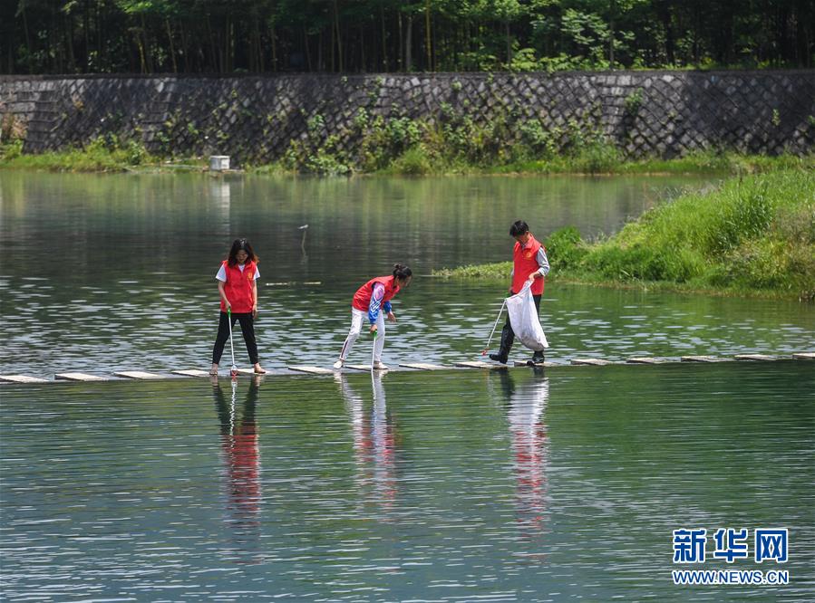 5月11日,湍口镇迎丰村的“河小二”党员志愿者对塘溪进行日常河道保洁及巡查。近年来,浙江省杭州市临安区湍口镇在各村组建由基层党员组成的“河小二”护水队。“河小二”们定期开展护水宣传、河道保洁、水质监测等护河巡河相关活动,发挥党员带头作用,以实际行动带领百姓共同守护美丽乡村生态环境。新华社记者徐昱摄