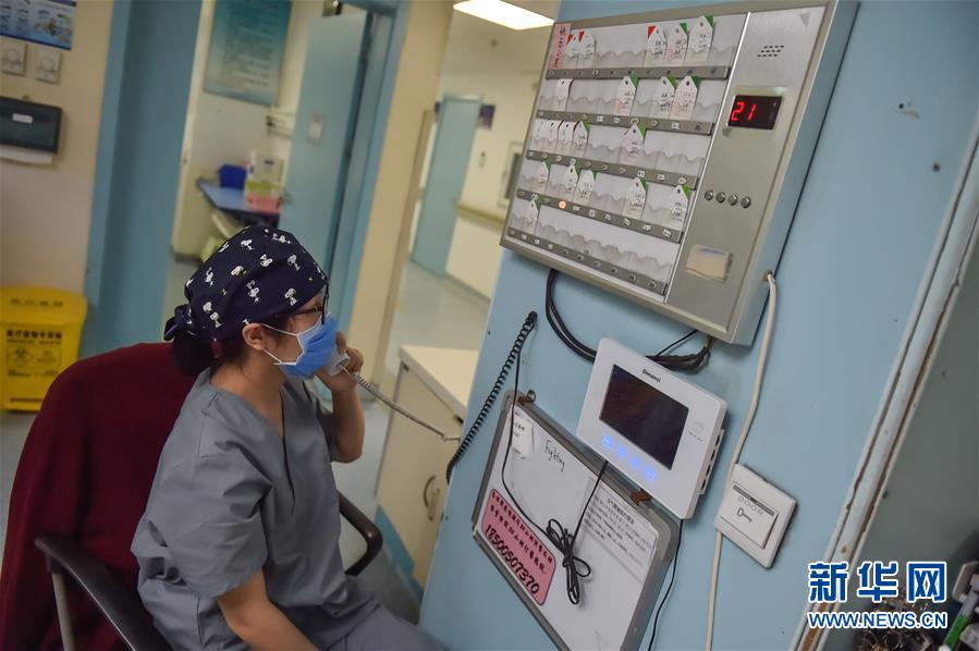 5月11日,在北京地坛医院感染二科护士站,护士彭蒨接听病房呼唤铃电话。北京地坛医院是北京市收治新冠肺炎患者的定点医院之一,医院的医护人员一直奋战在抗击疫情的一线。在国际护士节前夕,记者前往北京地坛医院,记录下抗疫一线护士的日常工作状态。新华社记者彭子洋摄