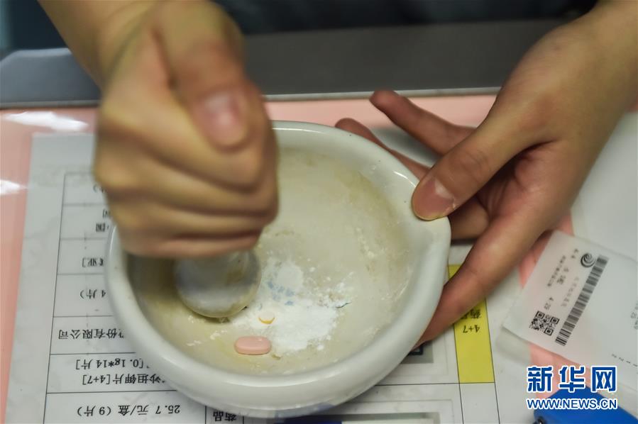 5月11日,在北京地坛医院感染二科护士站,一名护士为不方便服药的病人研磨药片。北京地坛医院是北京市收治新冠肺炎患者的定点医院之一,医院的医护人员一直奋战在抗击疫情的一线。在国际护士节前夕,记者前往北京地坛医院,记录下抗疫一线护士的日常工作状态。新华社记者彭子洋摄