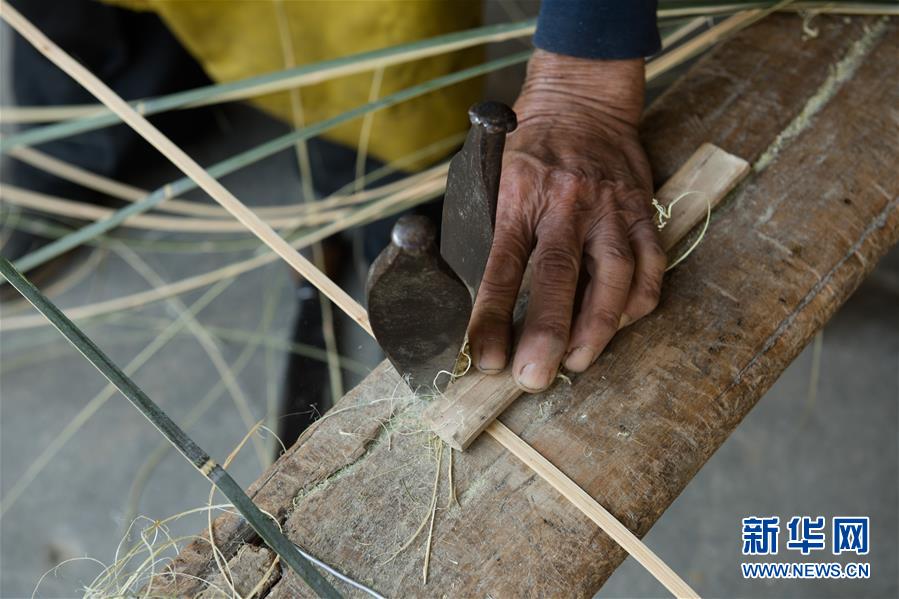 5月12日,浙江诸暨龙溪村的百岁老人蔡渭东在家中处理竹篾。浙江诸暨东和乡龙溪村有一位102岁的老人蔡渭东,他从12岁开始拜师学艺,做了90年的篾匠,如今依然耳聪目明,每天坚持编织篾器。蔡渭东老人说他舍不得丢掉这份老手艺,也希望年轻人能传承下去。新华社记者翁忻旸摄