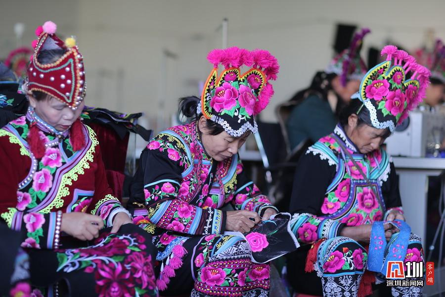 彝家公社签约了七八千个绣娘,带动近7000多个贫困家庭脱贫、致富。2020年初拍摄。