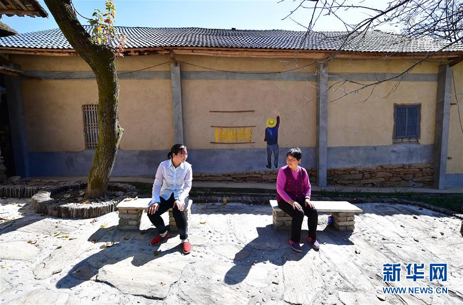 在安康市汉滨区茨沟镇西沟村,村民在改造后的房屋院子内活动(2018年10月29日摄)。新华社记者邵瑞摄