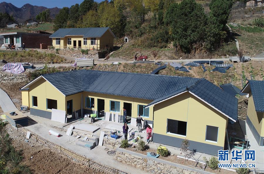 这是安康市汉滨区茨沟镇西沟村针对D级危房进行重建施工的轻钢装配式房屋(2018年10月29日摄,无人机照片)。新华社记者邵瑞摄