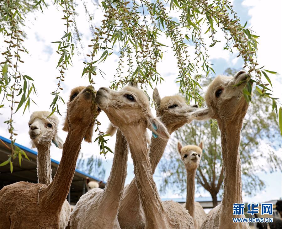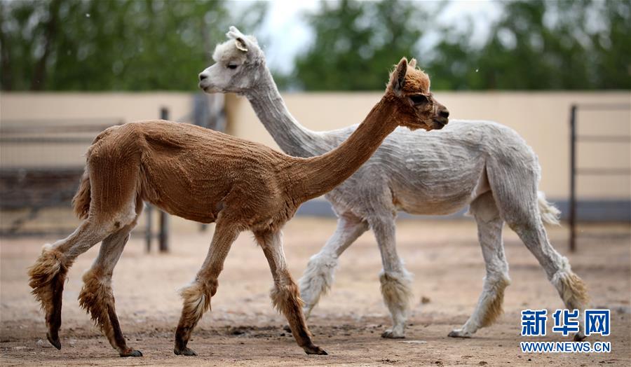 5月12日,剪下绒毛的羊驼在养殖基地的饲养舍里。新华社记者姚剑锋摄