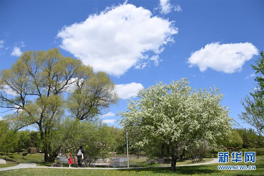 5月13日,游人在太阳岛风景区游玩。时下,位于黑龙江省哈尔滨市的太阳岛国家级风景名胜区草青树绿,绿意盎然。新华社记者王建威摄