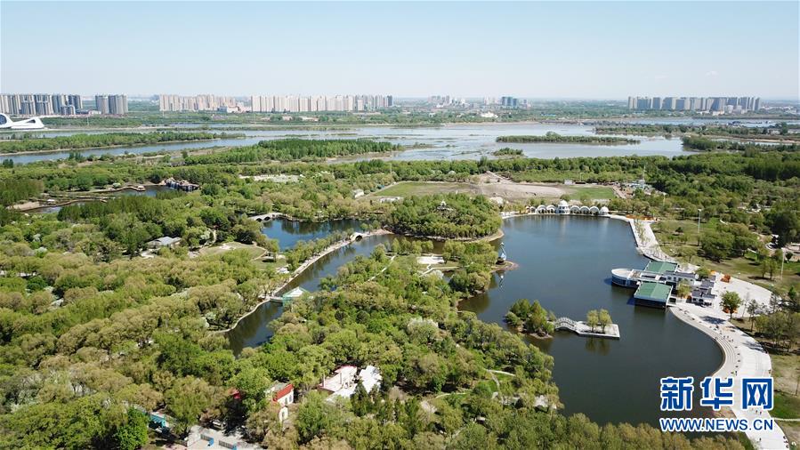 这是5月13日拍摄的太阳岛风景区(无人机照片)。时下,位于黑龙江省哈尔滨市的太阳岛国家级风景名胜区草青树绿,绿意盎然。新华社记者王建威摄