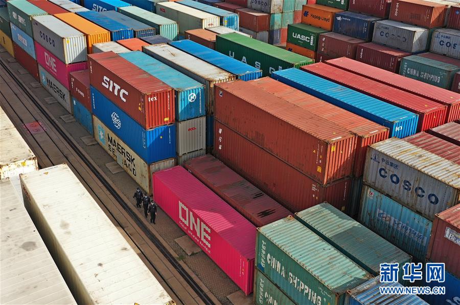 5月13日,山东威海出入境边防检查站民警在集装箱码头巡视。新华社记者朱峥摄