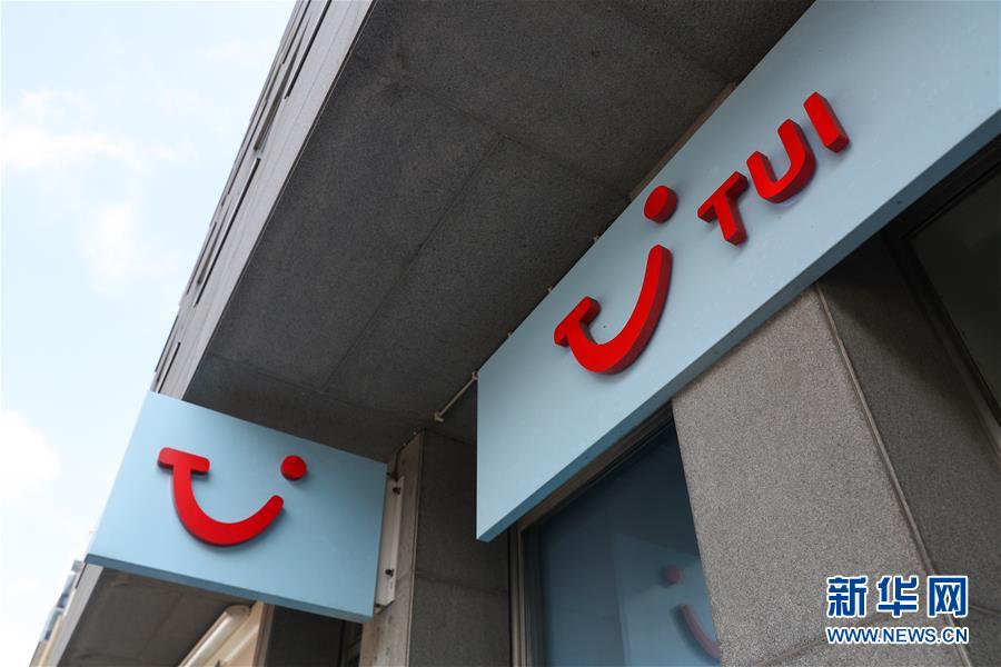 这是5月13日在比利时布鲁塞尔的一家门店拍摄的途易集团的标识。受新冠疫情冲击,旅游公司面临财务压力。欧洲最大旅游公司途易集团13日宣布准备裁员8000人以控制运营成本。途易集团总部位于德国,拥有旅行社、酒店、航空、邮轮等服务。新华社记者郑焕松摄