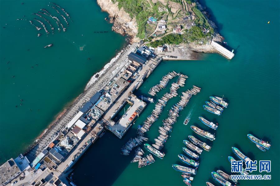 5月13日,休渔渔船停泊在福建省连江县安凯乡奇达村渔港内(无人机照片)。新华社记者姜克红摄