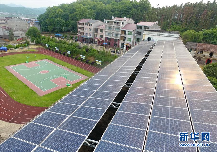 这是5月13日在福建省建瓯市小桥镇阳泽村拍摄的光伏电站(无人机照片)。阳泽村光伏发电精准扶贫项目装机容量为50千瓦,年预计发电量5.4万千瓦时。