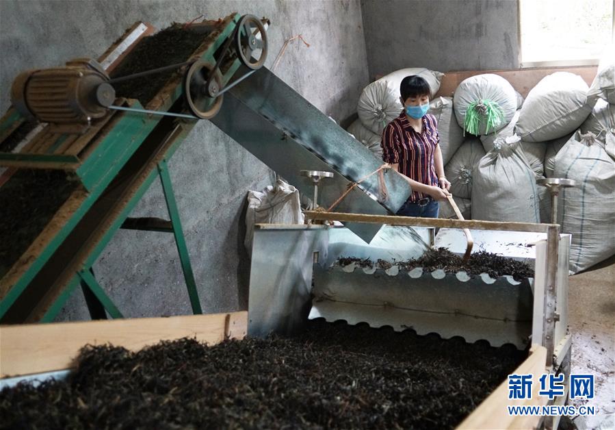 5月13日,在福建省建瓯市小桥镇阳泽村福臻岩茶厂,村民在色选茶叶。阳泽村现有茶叶企业70多家,茶山3000多亩,带动从事茶产业村民近2000人。新华社记者贺灿铃摄