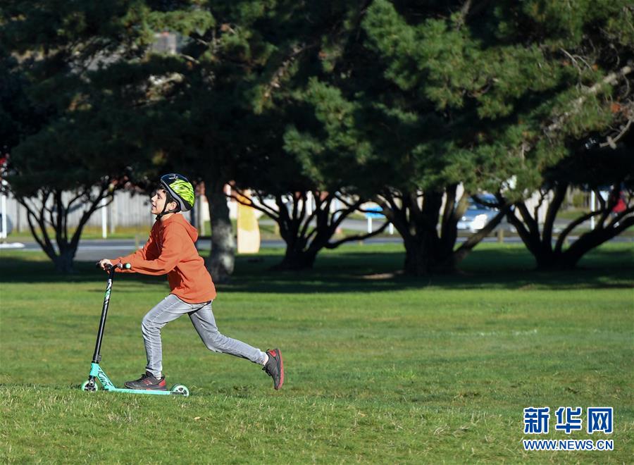 5月14日,一名男孩在新西兰首都惠灵顿郊外的公园玩耍。当天是新西兰从新冠疫情防控响应三级下调到二级的第一天,经济活动全面重启,公园等公共设施首次重新开放,中小学生将于5月18日全面返校复课。新华社记者郭磊摄