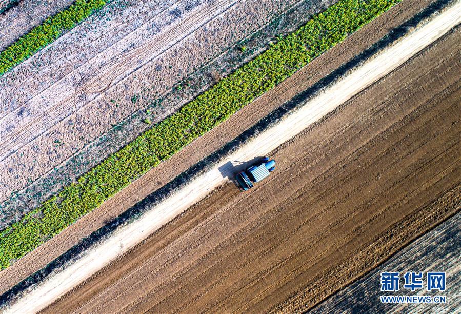 在河北省武安市大同镇马会村,农民驾驶农机在田间忙碌(3月20日摄,无人机照片)。新华社记者王晓摄