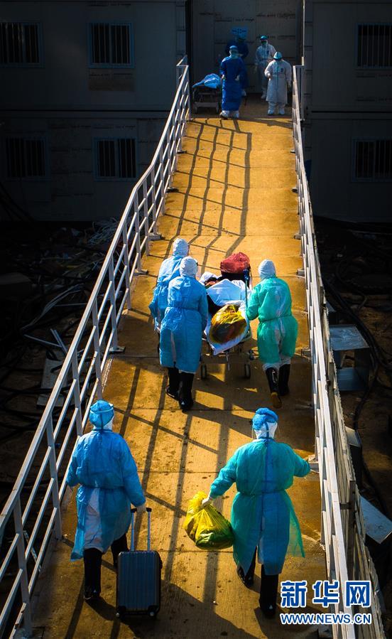 医护人员走向武汉火神山医院病房(2月4日摄)。新华社记者肖艺九摄