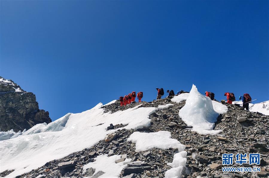 2020珠峰高程测量登山队在前往海拔6500米的前进营地途中(5月17日摄)。新华社特约记者拉巴摄