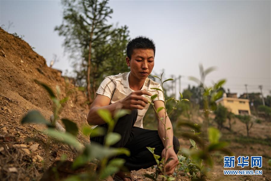 村民王九才在茶叶地里劳动(3月28日摄)。新华社记者江文耀摄