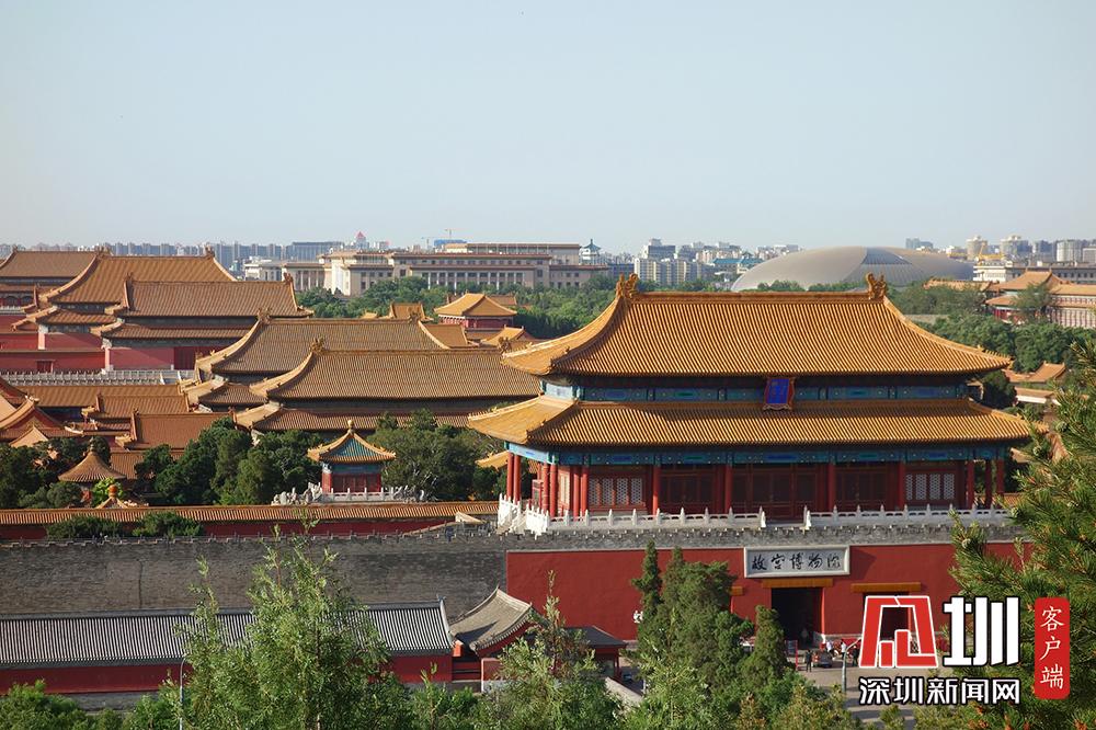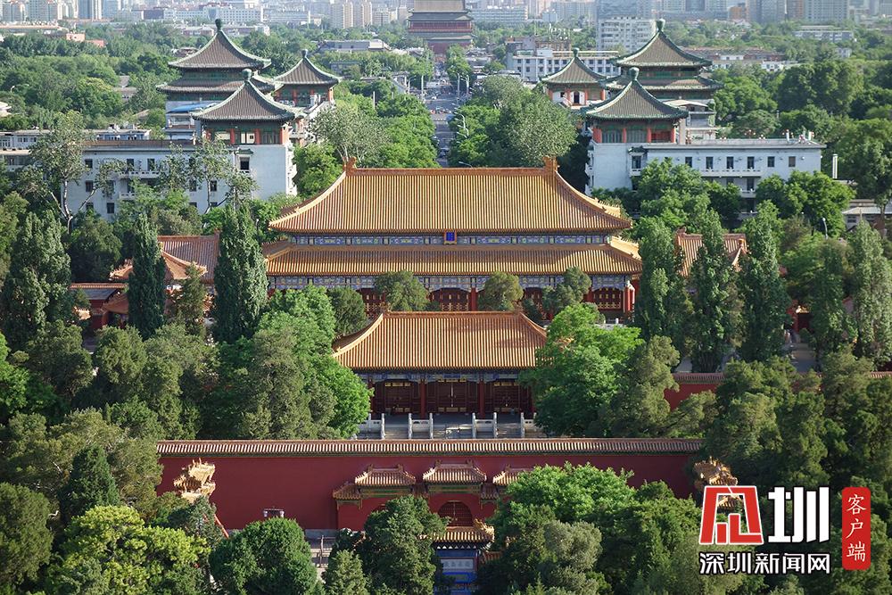 2020年5月18日,北京,天气晴好碧空万里,游客在景山公园登高远望,北京城壮美景观尽收眼底。