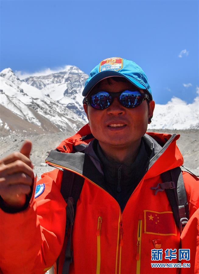 这是5月10日在珠峰大本营拍摄的国测一大队副总工程师陈刚。新华社记者晋美多吉摄