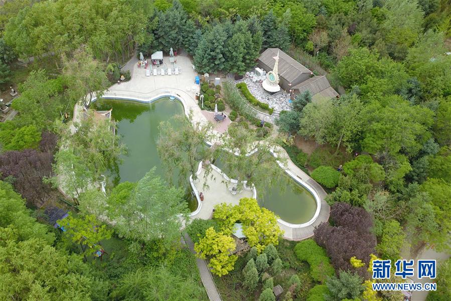 这是5月18日在兰州市城关区拍摄的白塔山公园初夏景象(无人机照片)。新华社记者范培珅摄