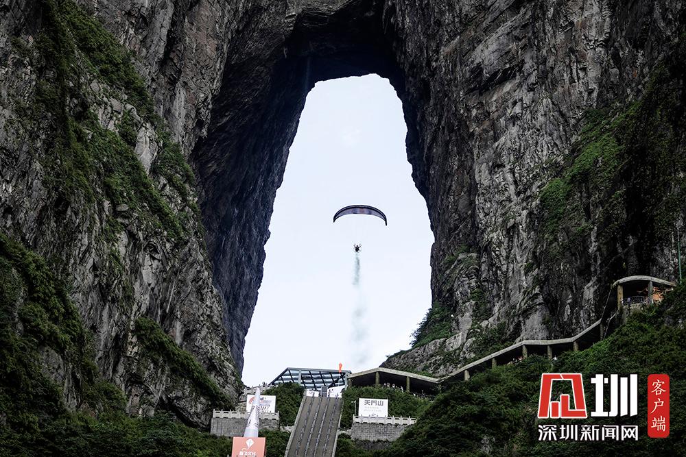 2020年5月19日报道,最近,翼装飞行女大学生在张家界天门山景区去世使得翼装飞行这项运动受到广泛关注。张家界天门山以得天独厚的地理条件吸引众多冒险家前来挑战。2019年6月下旬,来自Parabatix的天空赛手,六个国家的七名世界顶尖的动力伞飞行员,在张家界天门山顺利完成了花式技巧赛。