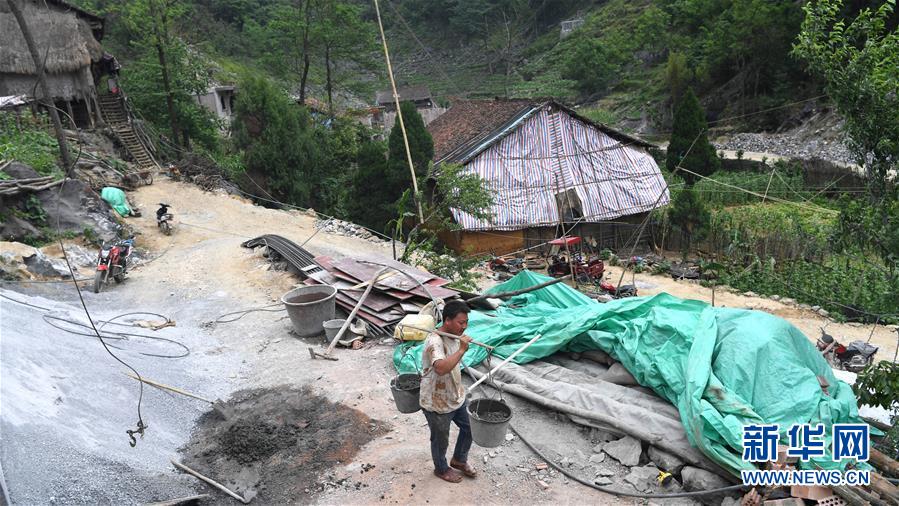 这是大化瑶族自治县七百弄乡弄合村弄根屯在进行危房改造和修建进屯路(5月13日摄,无人机照片)。