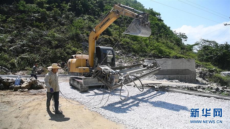 大化瑶族自治县七百弄乡弄合村弄根屯群众在修建进屯道路(5月16日摄)。新华社记者张爱林摄