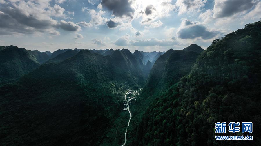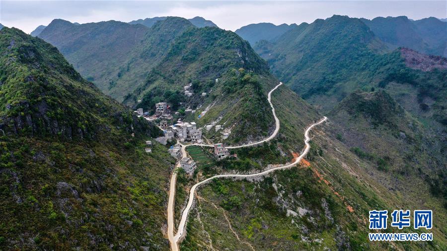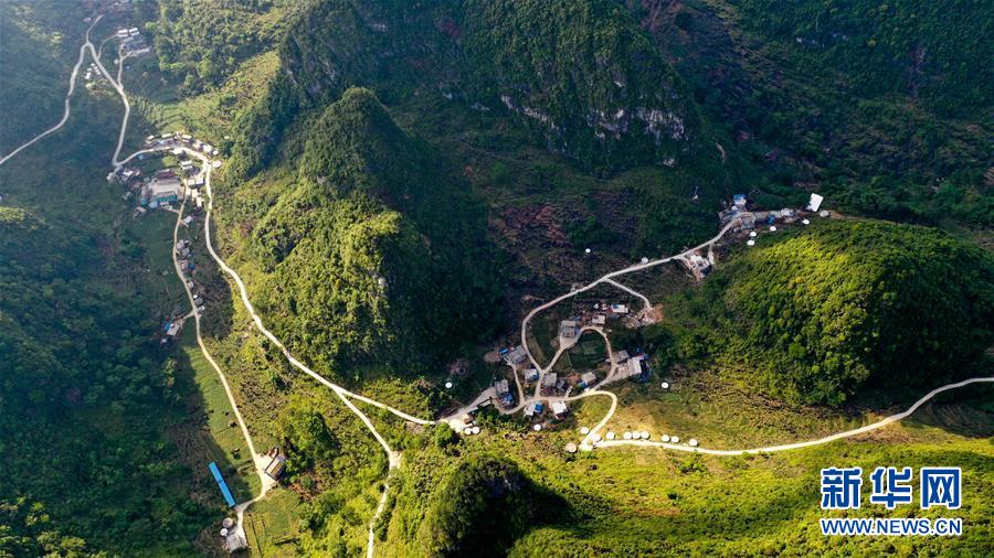 这是去年底通车的大化瑶族自治县七百弄乡江栋村那徐屯至弄奖屯公路(5月14日摄,无人机照片)。新华社记者曹祎铭摄