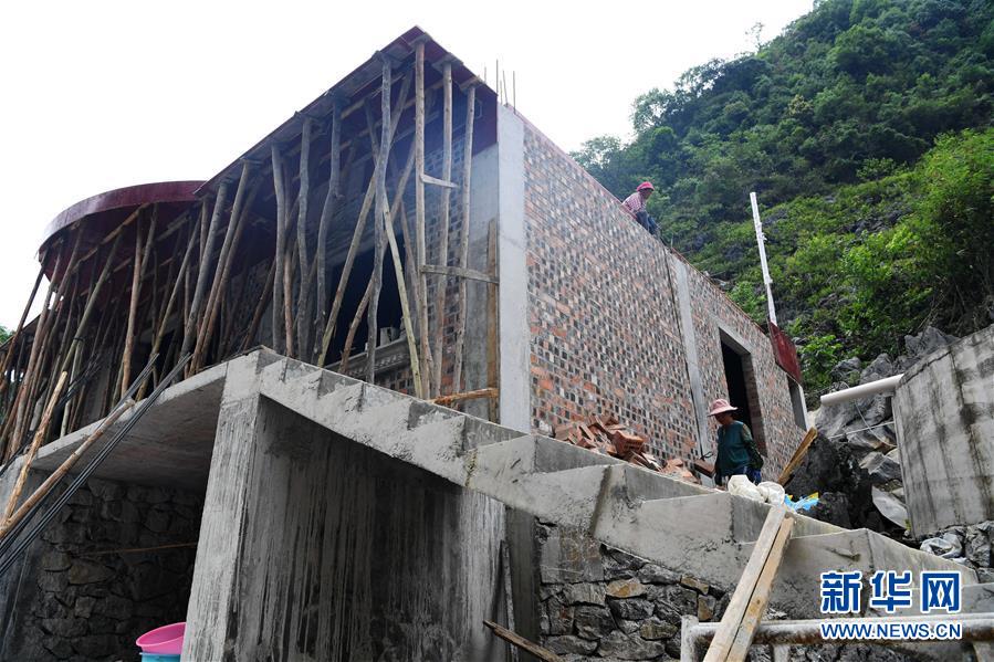 大化瑶族自治县雅龙乡胜利村群众在建设水柜(2019年6月6日摄)。新华社记者张爱林摄