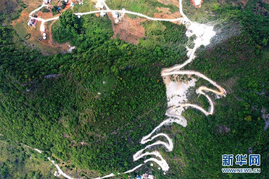 这是通向大化瑶族自治县七百弄乡弄平村的山路(5月15日摄,无人机照片)。新华社记者曹祎铭摄