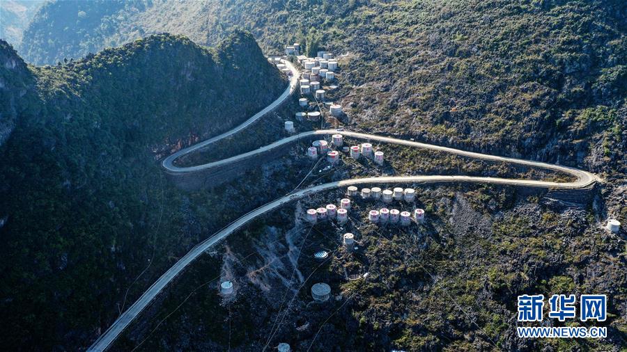 这是大化瑶族自治县江南乡上和村群众修建的水柜(2019年12月12日摄,无人机照片)。新华社记者张爱林摄