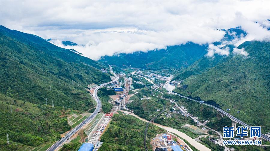 这是正习高速公路羊磴至夜郎路段(左侧道路)(无人机照片,5月21日摄)。新华社记者陶亮摄