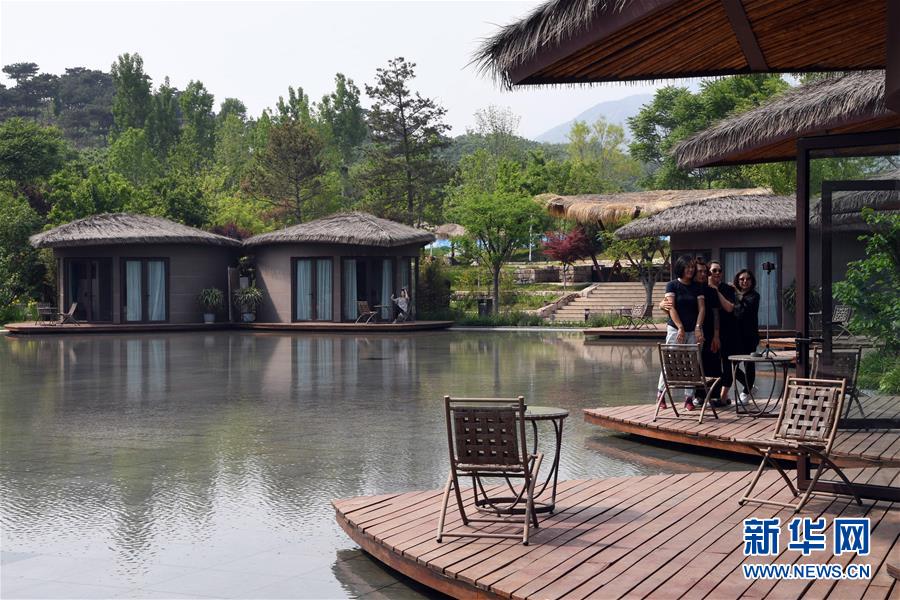 5月20日,游客在天津市蓟州区下营镇小港村“不知山乡宿”休闲拍照。新华社记者 马平 摄