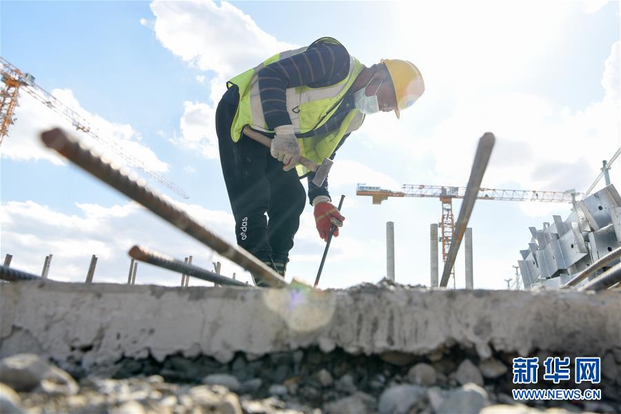 5月23日,在乌鲁木齐机场改扩建工程施工现场,工人在绑扎基础梁钢筋。复工复产以来,乌鲁木齐机场改扩建工程建设项目进展顺利,目前进入航站楼基础结构施工阶段,预计航站楼主体年内完成70%的施工量。去年10月开工建设的乌鲁木齐机场改扩建工程是国家“十三五”规划重点建设项目,包括新建50万平方米的航站楼、2条跑道、9.27万平方米的综合交通中心及相关配套等,整体工程计划在2023年年底完成。新华社记者丁磊摄