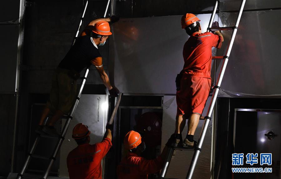 5月23日,工人在海口文明东越江通道项目隧道内施工。新华社记者杨冠宇摄